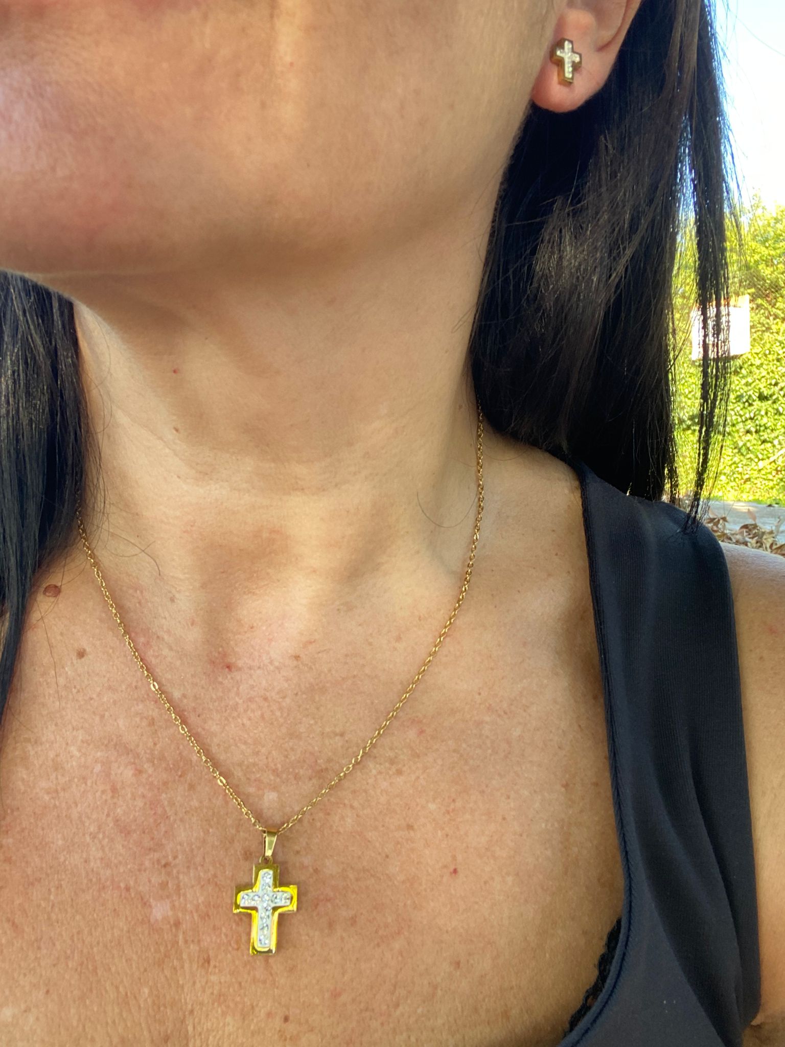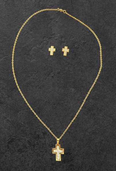Colgante y pendientes Cruz dorado